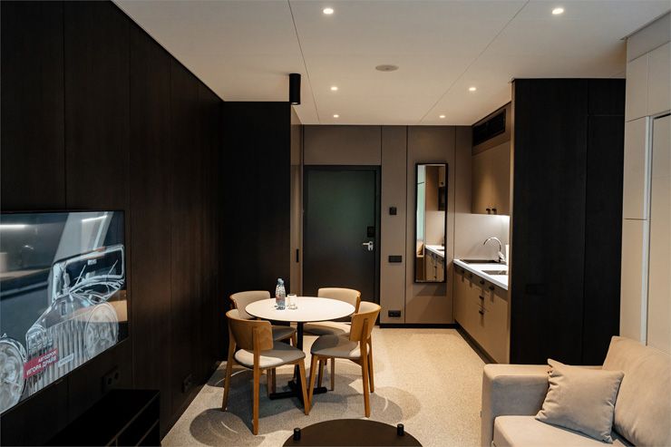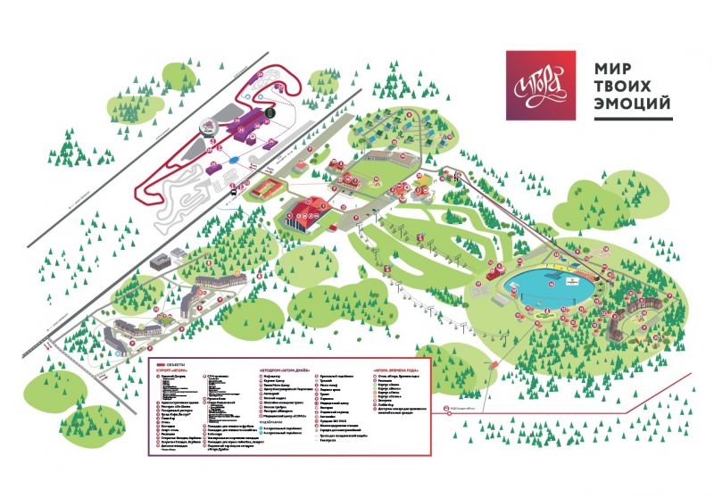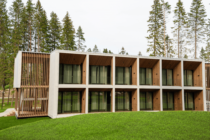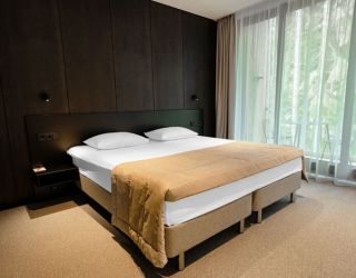 Комплекс, расположенный на благоустроенной территории в окружении хвойного леса, включает в себя четыре двухэтажных корпуса, названных по временам года: Лето, Осень, Зима, Весна. В распоряжении гостей номера разных категорий комфорта, в некоторых из них оборудована кухня. В комнатах стильный и лаконичный дизайн, интерьеры оформлены в натуральных природных оттенках. Каждый номер укомплектован кондиционером, плазменным телевизором, мини-холодильником. В санузле — душ, фен и косметические наборы для гостей. Среди услуг — крытый бассейн, беспроводной интернет, и парковка.