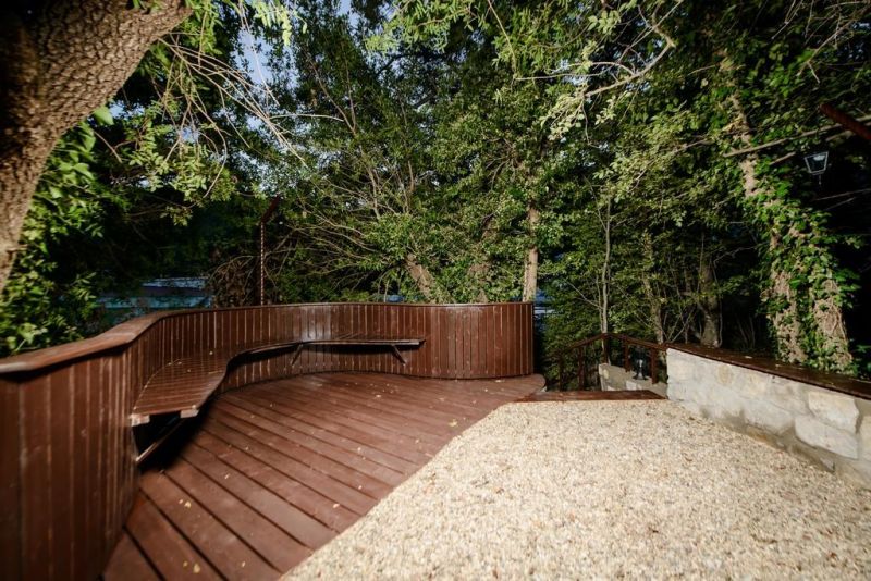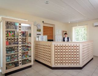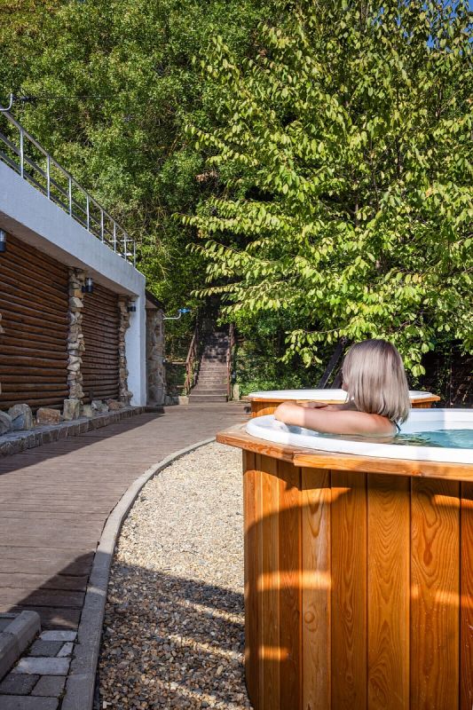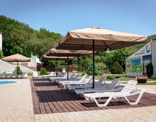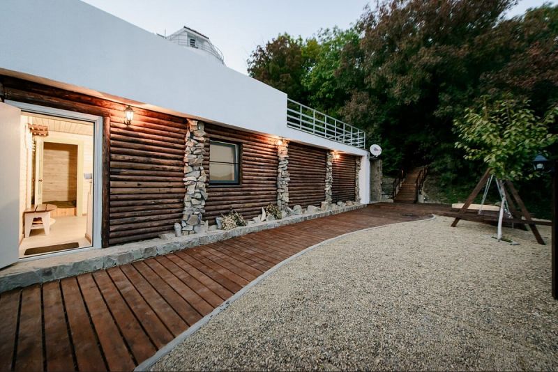 Номера оформлены в светлых оттенках, дизайн интерьера современный. Комнаты оснащены необходимой мебелью, кондиционером, телевизором, Wi-Fi, отдельной ванной комнатой с полотенцами и косметическими принадлежностями. Отведать вкусные блюда домашней кухни можно в кафе. На свежем воздухе оборудована зона барбекю, есть небольшой шатер с мангалом.