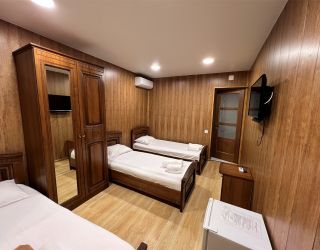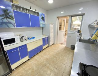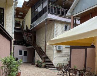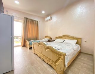 Здание гостевого дома занимает небольшую территорию на первой береговой линии. В распоряжении гостей стандартные номера и апартаменты с кухней. Везде предусмотрен индивидуальный санузел с душем, есть кондиционер, сеть wi-fi, телевизор и холодильник.