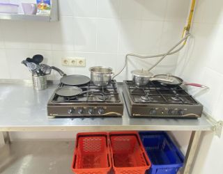 Для удобства гостей на территории оборудована общая кухня, мангальная зона, релакс-зона с удобной мебелью. В числе услуг – парковка, желающие могут арендовать прогулочные САПы, а малышам предоставляются кроватки-манежи.