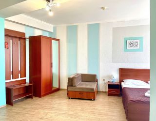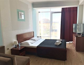 Номерной фонд, предлагающий разные типы номеров – стандарт, люкс, студии и апартаменты, вмещает до 50 отдыхающих. Светлые, просторные номера хорошо укомплектованы. В каждом из них есть широкие двуспальные кровати, телевизор, кондиционер, холодильник, в ванной комнате имеется фен.