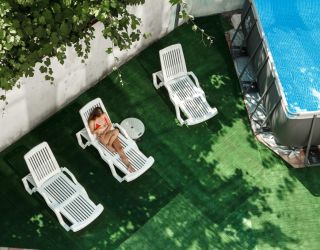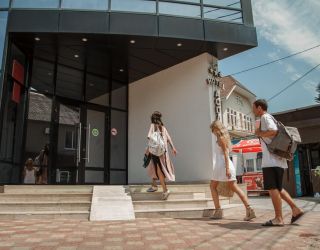 Территория вокруг гостиницы облагорожена, для постояльцев организована специальная зона отдыха с шезлонгами, есть открытый бассейн (в летнее время), предусмотрена охраняемая парковка, доступен беспроводной интернет. У администратора отдыхающие могут заказать трансфер, приобрести экскурсии. Для детей на территории отеля организована игровая площадка (межсезонье).