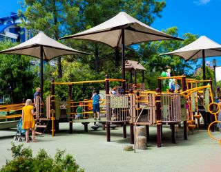 Поездом до ж/д вокзала Адлер, далее автобусом №555 в направлении «Вокзал Олимпийский парк» до остановки «Торговый центр Новый век», далее 940 м до отеля.