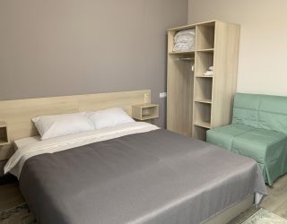 Трехэтажный корпус разместился на закрытой охраняемой территории. Жилой фонд, рассчитанный на размещение 64 человек, предлагает гостям номера Стандарт, Полулюкс и Люкс. Каждый номер оснащен сплит-системой, плазменным телевизором, феном и другой бытовой техникой. Гостям доступны беспроводной интернет, автомобильная парковка,