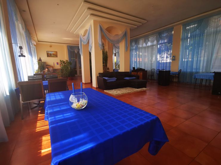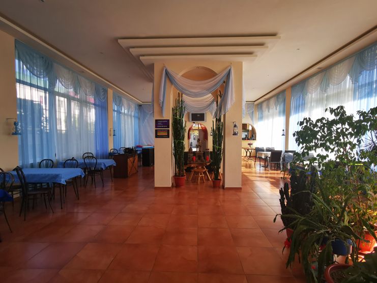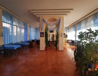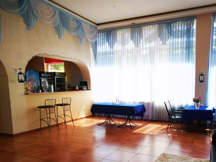 При отеле работают столовая, кафе и бар, где отдыхающие могут заказать себе комплексное питание, перекусить в течение дня или просто выпить чашку кофе. Для автовладельцев возле корпуса организована парковка, на всей территории хорошо ловит сеть wi-fi, По вечерам в отеле проводятся концерты, кинопоказы, анимационные мероприятия, работает караоке.