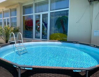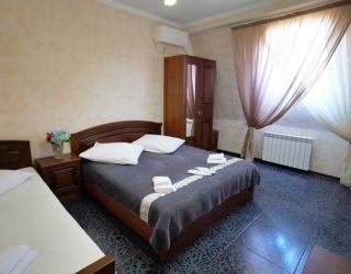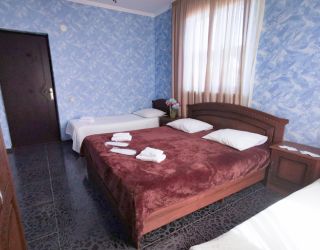 Трехэтажный корпус отеля занимает закрытую территорию с небольшим внутренним двориком. Гостей ожидают номера Стандарт или Семейный — жилой фонд рассчитан на 90 человек. В каждом номере есть собственный санузел с косметическими принадлежностями, кондиционер, телевизор, холодильник и меблированный балкон.