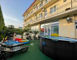 В 10 минутах езды от отеля находится мелко-галечный пляж. Пляж оснащен медицинским и спасательным постами, кабинками для переодевания., предусмотрен прокат шезлонгов и лежаков, на побережье работают бары и кафе.