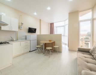 В апартаментах выполнен качественный ремонт, предусмотрена оборудованная кухня, предоставляются косметические наборы и тапочки. Удобное расположение апартаментов позволяет комфортно и быстро добираться до кафе, магазинов, парков.
