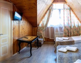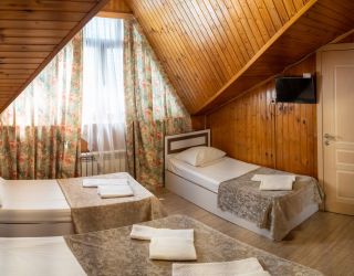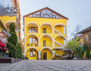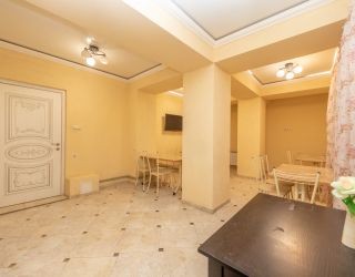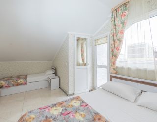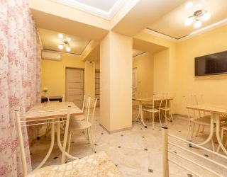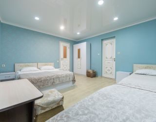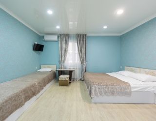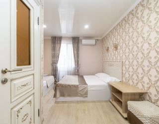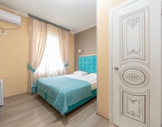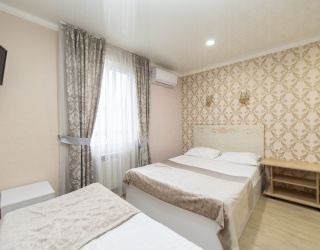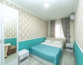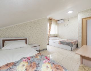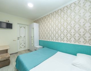 Номера гостевого дома расположились в 4-этажном здании классического стиля. В комнатах для отдыхающих установлена комфортабельная мягкая мебель, шкаф, работает высокоскоростной интернет, есть телевизор, холодильник, кондиционер, санузел с душем. Гостям предоставляются туалетные принадлежности, мягкие полотенца и халаты, тапочки, есть фен, чтобы высушить волосы.