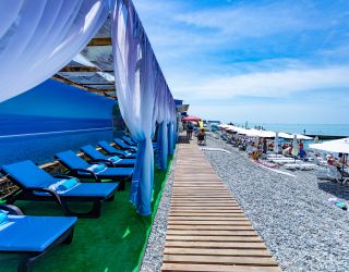 Для самостоятельного приготовления еды предусмотрена общая кухонная зона, оборудованная холодильником, плитой, микроволновой печью, электрическим чайником и необходимым набором посуды. На свежем воздухе оборудована мангальная зона. Стойка регистрации круглосуточная. В качестве дополнительной услуги предоставляется трансфер. Ближайший пляж галечный, с шезлонгами, навесами, зонтами от солнца, раздевалками и водными развлечениями на любой вкус.