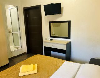 Номера оборудованы всем необходимым для комфортного проживания. В номерах есть кондиционер, телевизор, холодильник, чайник, фен. В некоторых номерах есть кухня.