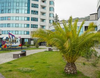 Поездом до ж/д вокзала Адлер, далее на автобусе №551,105с,105,517,534,550,552,555 до остановки «Пансионат Южный», затем пройти 450 м до апартаментов.