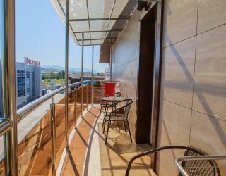 Ближайший пляж представляет собой уютное галечное побережье, оборудованное шезлонгами, навесами и солнцезащитными зонтами, а также раздевалками и разнообразными водными развлечениями.