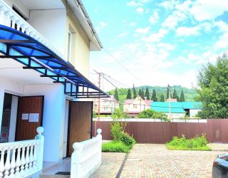 На самолете до аэропорта Адлер, далее на автобусе №105,105а,105с до остановки «Пансионат Знание», далее 460 м до гостевого дома.