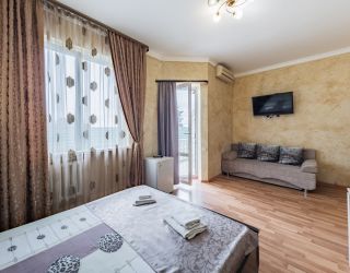 В двух минутах ходьбы находится городской галечный пляж. На побережье установлены раздевалки, навесы, шезлонги, работают кафе, есть пункт проката пляжных принадлежностей.