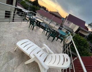 На территории обустроена мангальная зона для приготовления блюд на открытом огне. На 3 этаже гостевого дома находится уютная терраса со столиками, стульями и лежаками. Ближайший пляж галечный, полностью оборудованный для комфортного отдыха приезжих.