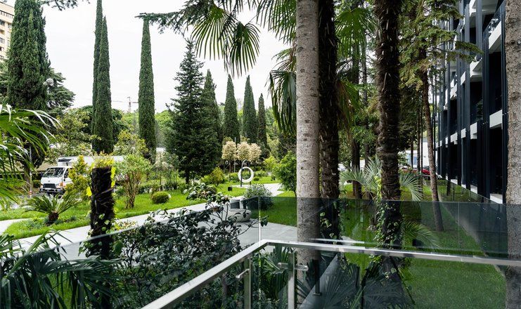 Самолетом до аэропорта г. Сочи, далее на автобусе №558 до остановки «Санаторий Изумруд», далее 600 м до отеля.