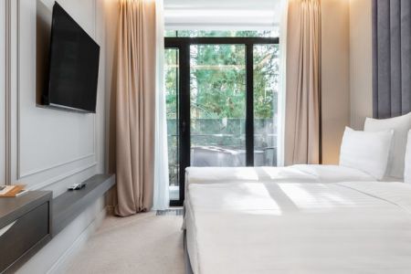 Самолетом до аэропорта г. Сочи, далее на автобусе №558 до остановки «Санаторий Изумруд», далее 600 м до отеля.