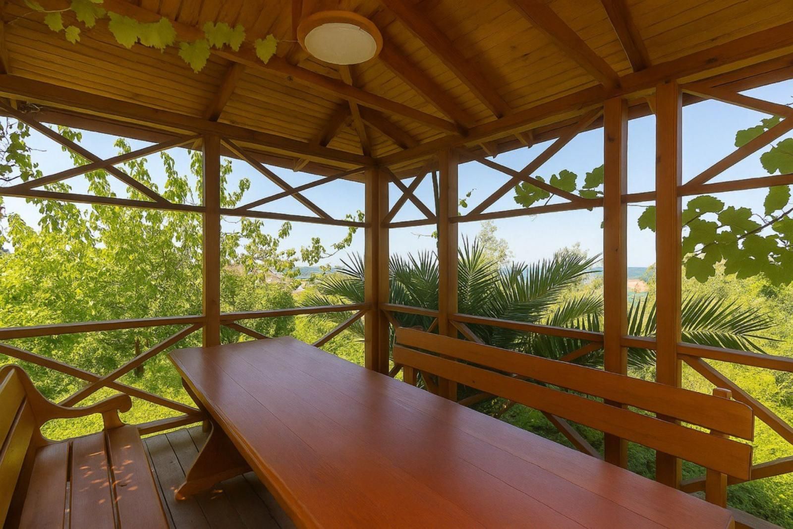 Рядом — галечный пляж в 7–10 минутах ходьбы, а с панорамной террасы открываются потрясающие виды на море и закаты.