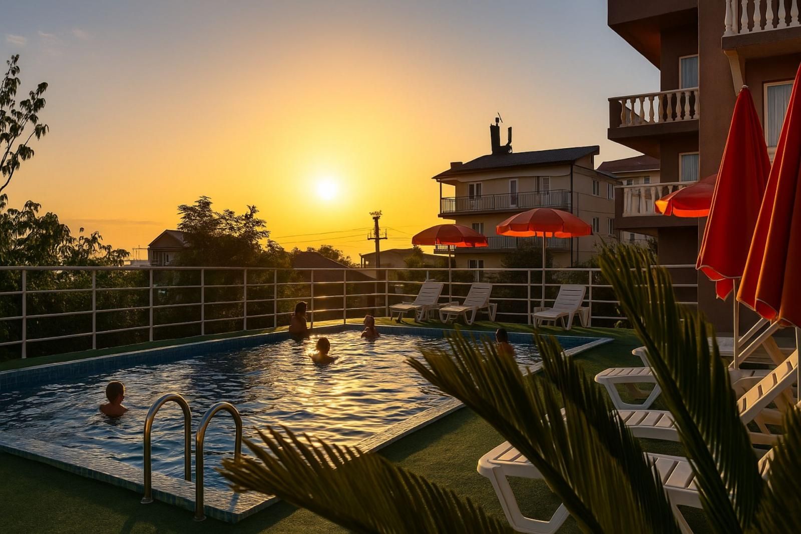 Гостевой дом «Панорама» в Адлере — это комфортный отдых у моря с подогреваемым бассейном, шведским столом и анимацией для детей. Уютная ухоженная территория с большим разнообразием растений создаёт атмосферу спокойствия и уюта.
