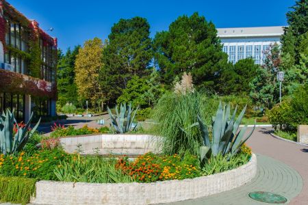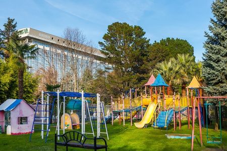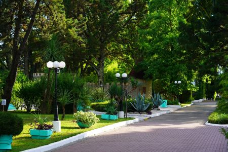 Поездом до ж/д вокзала Адлер, далее на автобусе и маршрутных такси №125с, 125п, 105с, 115, 117, 123, 50 до остановки «Санаторий Изумруд».