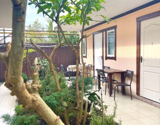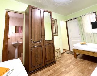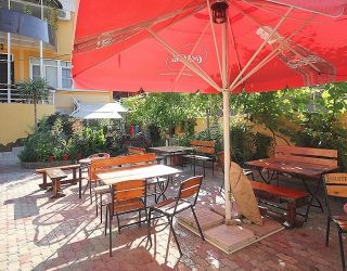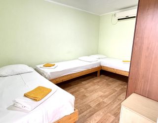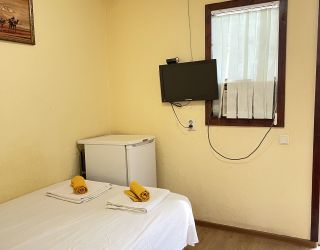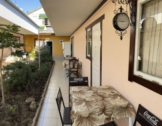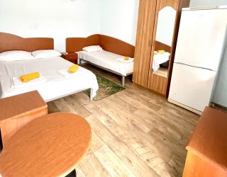 Номерной фонд разных категорий располагается в 3-этажном корпусе отеля. Все комнаты оснащены удобствами для комфортного пребывания: кондиционером, телевизором, качественным постельным бельем и уютной мебелью. Выбор номеров позволяет гостям использовать общий душ или наслаждаться личной ванной. Большая общая кухня оборудована всем необходимым для приготовления любимых блюд. На территории есть мангальные зоны, а также места для отдыха под зонтами. Ближайший пляж галечный, полностью благоустроенный для комфортного отдыха на Черноморском побережье.