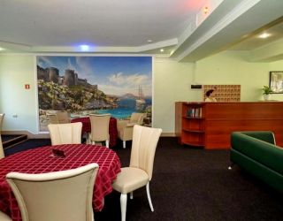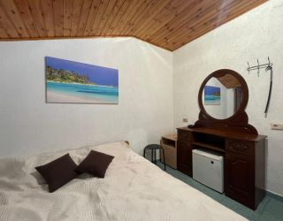 Здание имеет 5 этажей. В каждом номере есть вся необходимая мебель, ТВ, холодильник, отдельный санузел, вентилятор, а в номерах повышенной комфортности кондиционеры. С балконов открывается прекрасный вид на море, сад и внутренний дворик, а каждый вечер можно любоваться прекрасным южным закатом.