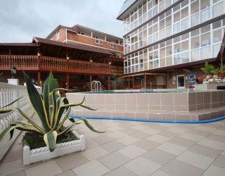 На территории гостиницы расположен большой бассейн, удобная баня с местами для отдыха, прекрасный фруктовый сад с беседкой, своя столовая с домашней кухней и разнообразным меню, а так же летняя кухня для самостоятельного приготовления пищи.