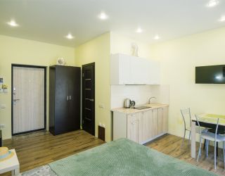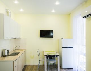 В комфортабельных апартаментах есть все необходимое для комфортного проживания: удобная мебель, мини-кухня, ванная комната с душем, санузлом и феном, кондиционер, телевизор, холодильник, стиральная машина, микроволновая печь, плита электрическая, электрочайник, набор посуды, утюг, интернет Wi-Fi.