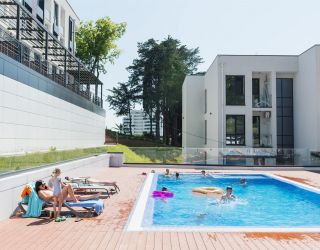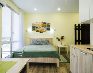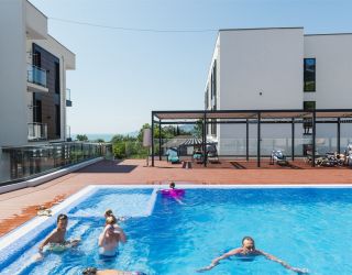 Уютные апартаменты расположены в Адлерском районе г. Сочи в ЖК «Касабланка». На территории комплекса расположены парковка, спортивная площадка, открытый бассейн.