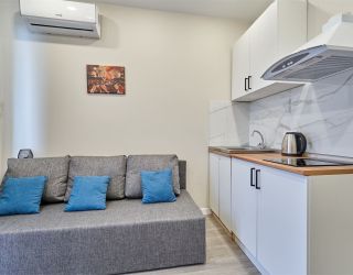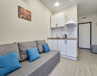 Уютные апартаменты с новым дизайнерским ремонтом в центре Адлера. Рядом расположены кафе, столовые, рестораны, магазины и множество развлечений для детей и взрослых. Недалеко - ж/д вокзал, аэропорт, курортный городок. Общественный галечный пляж находится в 20 минутах ходьбы от апартаментов. Пляж оборудован зонтиками и шезлонгами, которые за отдельную плату можно взять в аренду.