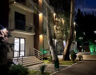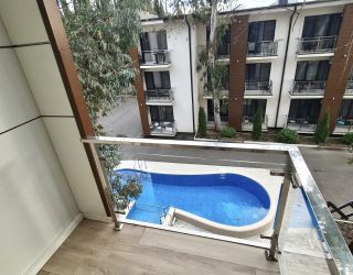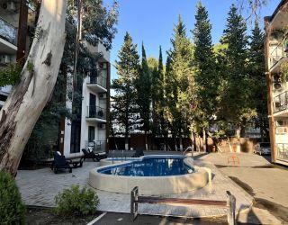 На территории комплекса имеется детская площадка, открытый бассейн, много зелени.