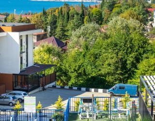 Поездом до ж/д вокзала г. Адлер, далее пешком 210 м до остановки «Вокзал Адлер», далее на автобусе №105а,105с,517,534,550,551,552,555 до остановки «Пансионат Южный», далее 920 м до апартаментов.