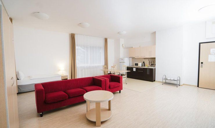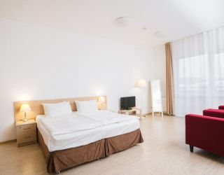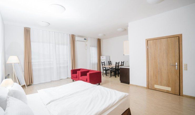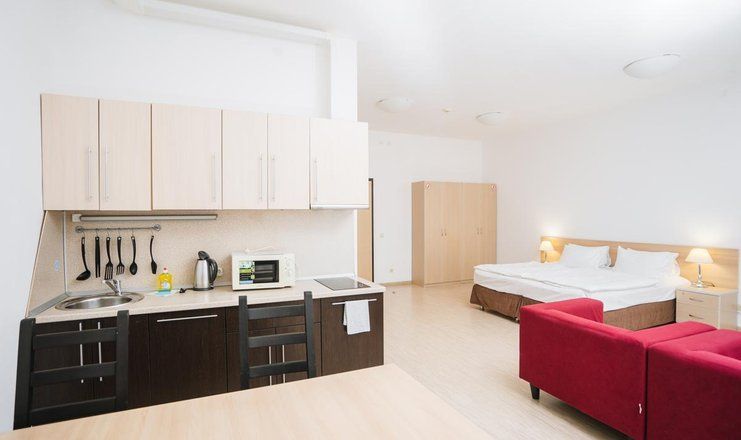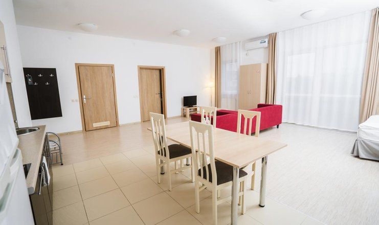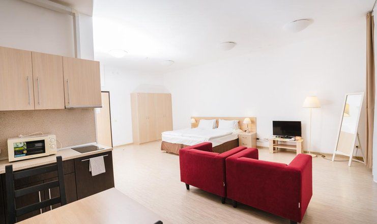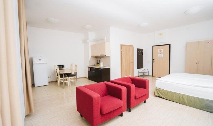 Этот отель универсален в отношении предпочтений клиентов: в нём с одинаковым удовольствием могут жить семьи с детьми, компании друзей, романтические пары и одиночные постояльцы. Все номера комплекса имеют балкон и собственную ванную, а большинство – мини-кухню с микроволновой печью и холодильником, набором посуды. Они оборудованы кондиционером, телевизором, wi-fi. В корпусах работают лифты.