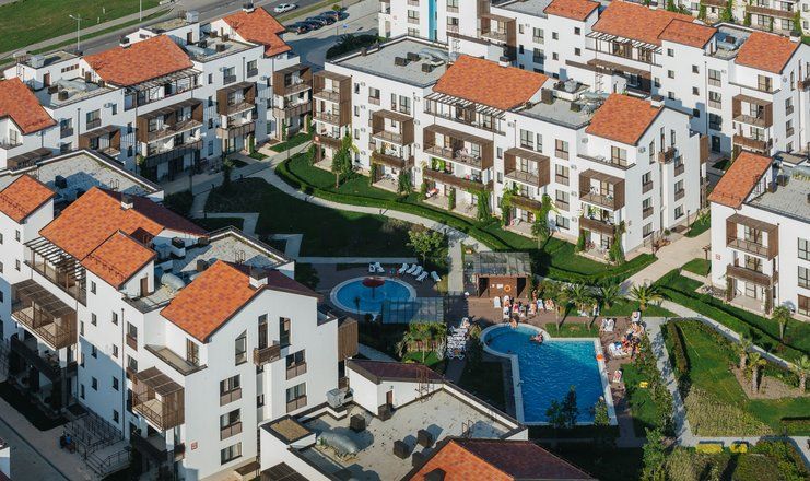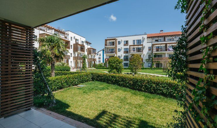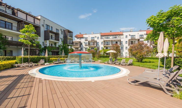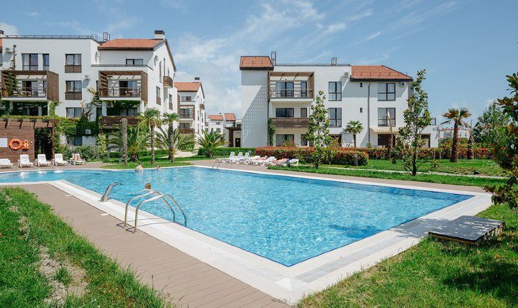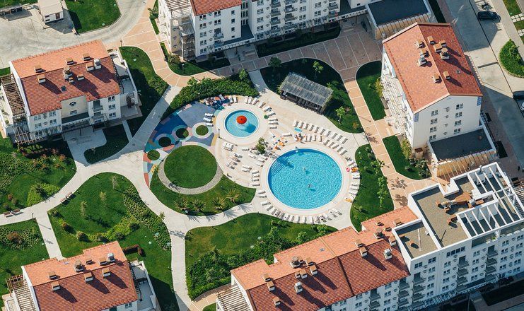 Апарт-отель «Альфа Сириус Парковый» – своеобразный городок на самом побережье Чёрного моря в 35 км от центра Сочи, состоящий из шестнадцати четырёх- и пятиэтажных корпусов, напоминающий по виду обычный городской микрорайон с обособленными внутренними дворами, благоустроенными и озеленёнными, оснащёнными детскими игровыми площадками, скамейками и сквериками, беседками, бассейнами.