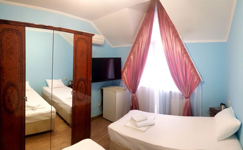 Отличная гостиница хорошие номера со всеми удобствами тёплая зимой и прохладная летом. Хорошие большие балконы красивая мебель и постельное. Отличный напор воды оплата картами и проч. Рядом море 200 метров без обмана. Галечный пляж и красивые улочки, дельфинарий, мне понравилось. Спокойная и уютная с современным стеклянным лифтом и прекрасным расположением множество недорогих столовых и кафе