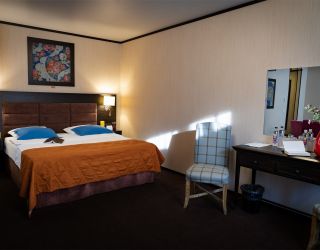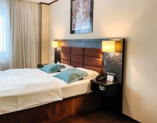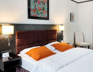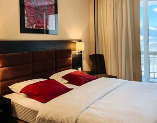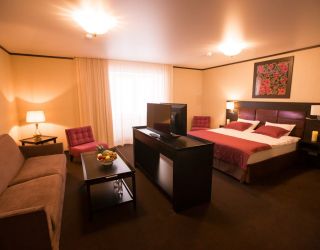 Территория сибирского Вегаса занимает открытое пространство в живописной долине за горой Каим, откуда открываются необыкновенные виды. Один 3-этажный корпус 4*, оснащенный лифтом, располагает номерами различных категорий от стандарта до VIP уровня. Номера отличаются современным дизайном и продуманностью деталей. Гостям обеспечен максимальный комфорт – в номерах установлен телевизор, Wi-Fi, телефон, кондиционер, сейф, мини-холодильник, чайник, фен, халаты, тапочки, туалетные принадлежности. Проживание в 3-комнатных тематических номерах «Венеция» и «Серебряный век» позволяет получить статус «Особого Гостя» с расширенным перечнем привилегий.