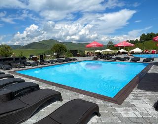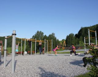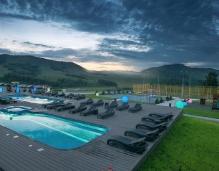 Гордостью комплекса является открытый круглогодичный бассейн с видом на парк маралов и 4 открытых летних бассейна с подогревом. Для детей оборудована отдельная чаша для купания рядом со взрослыми. Тренажерный зал оснащен многофункциональными тренажёрами: зона кардио-, силовых тренажеров и свободных весов. Тренировки возможны как с инструктором, так и самостоятельно. Уличная спортплощадка также мультифункциональна.