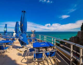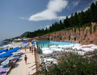 Оборудованный городской пляж с мелкой галькой – в 50 метров от отеля.