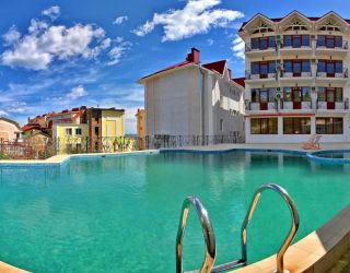 Вилла «Алина» построена на второй береговой линии. Арендованный пляж с удобным пологим входом в воду находится в 350 метрах от корпусов.