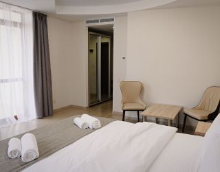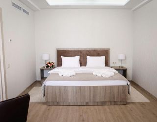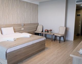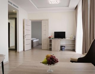 Восьмиэтажный корпус отеля возвышается на закрытой благоустроенной территории. Жилой фонд включает в себя 90 номеров разной категории — Стандарт, Улучшенный, Люкс. В комнатах стильный современный интерьер, выдержанный в светлых тонах, все номера оснащены собственным санузлом, системой кондиционирования и меблированными балконами, с которых открываются живописные виды на море. Также везде имеются плазменный телевизор, фен, электрочайник.