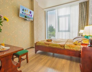 Отель «Art House Hotel» расположился в Алуште Республики Крым, на первой береговой линии. С верхней террасы виден пляж и Черное море, так же оборудован бассейн шезлонгами, финская сауна. Для гостей разных возрастов проводят мастер-классы и анимации для детей.