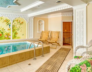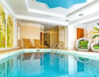 В отеле есть общий обеденный зал. В распоряжении отдыхающих два бассейна — открытый и крытый, банный комплекс с финской сауной. Для автовладельцев возле корпуса организована парковка, гостям доступен беспроводной интернет, прокат дополнительной бытовой техники.