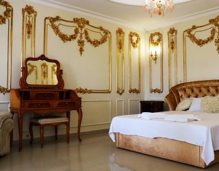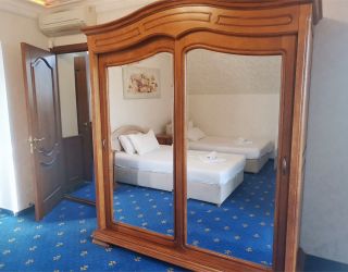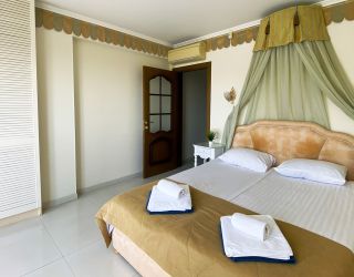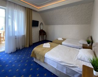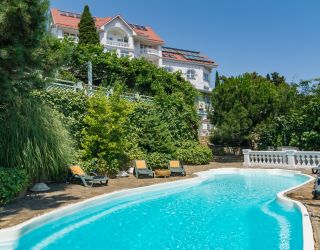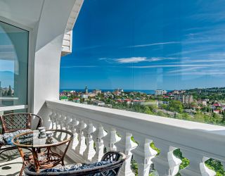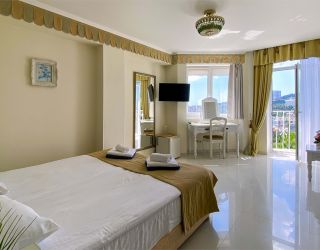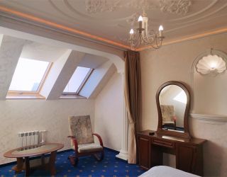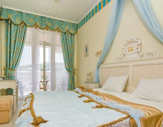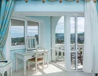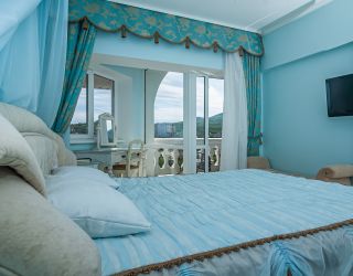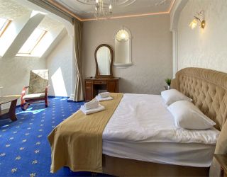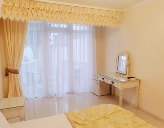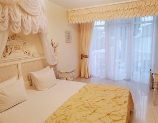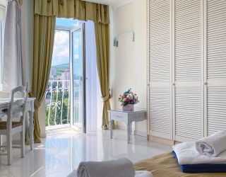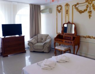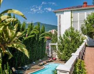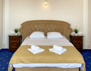 Корпус отеля расположился в живописной парковой зоне на территории которой организованы видовые террасы, беседки, фонтаны, проложены уютные аллеи. Гостей ожидают номера Стандарт, Полулюкс, Люкс, Делюкс и Апартаменты, оснащенные кухней. В номерах хорошая качественная мебель, классический интерьер выдержан в приятных светлых оттенках. В каждой комнате есть необходимая бытовая техника, санузел с ванной или душем, в ряде номеров предусмотрены балконы.