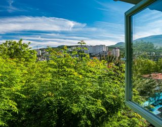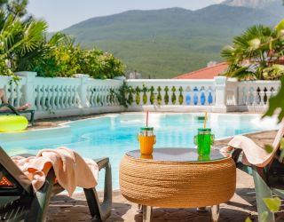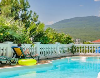 Самолетом до аэропорта г. Симферополь, далее на троллейбусе №20 до остановки «Железнодорожный вокзал», далее на автобусе «Ялта-Черноморское» до остановки «Заповедник», далее пешком 550 м до виллы.