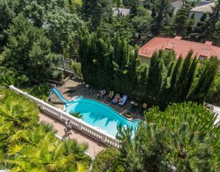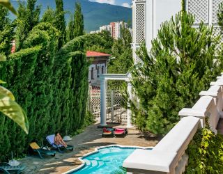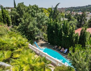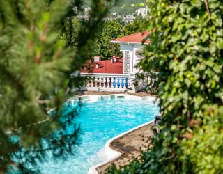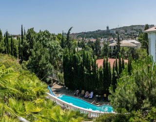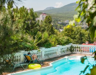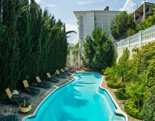 Поездом до ж/д вокзала г. Симферополь, далее на автобусе «Симферополь-Ялта» до остановки «Заповедник», далее пешком 550 м до виллы.