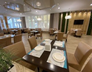 Питание для гостей подается в ресторане санатория. Кроме него, с июня по октябрь работает «Снек-бар» в котором подают кофе, чай, освежающие напитки, выпечку и легкие закуски.