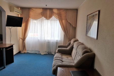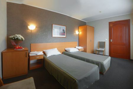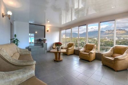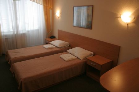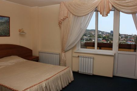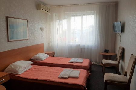 Самолетом до аэропорта г. Симферополь, далее на троллейбусе №17 до остановки «Московская площадь», далее на троллейбусе №52 до остановки «Автовокзал», далее 460 м до гостиницы.