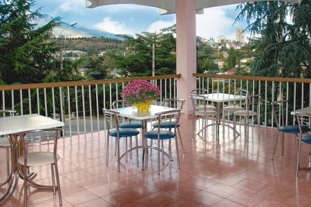 Поездом до ж/д вокзала г. Симферополь, далее 320 м до остановки «Автостанция Курортная», далее на автобусе «Симферополь – Рыбачье» до остановки «Автовокзал Алушта», далее 580 м до гостиницы.