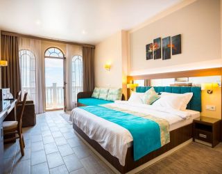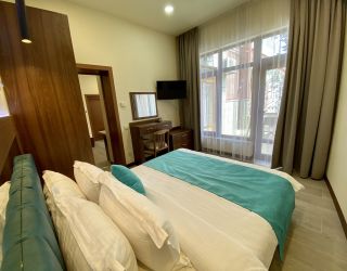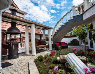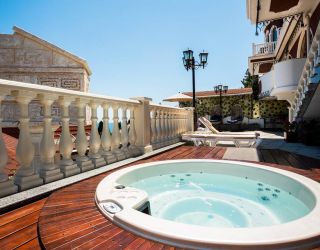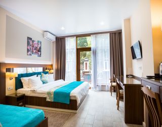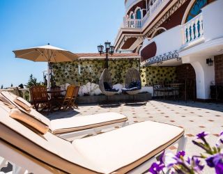 К услугам отдыхающих отеля – ухоженная территория площадью в 0,06 га среди роскошной зелени, с уютными зонами отдыха, джакузи, садовым домиком для барбекю и беседкой.
